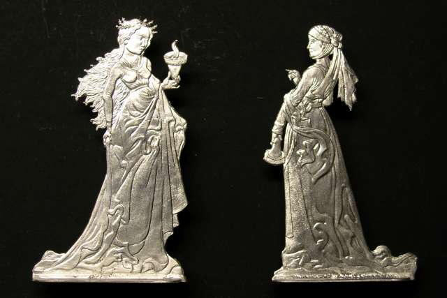 BB10 "Die Kluge" und BB11 "Die Törichte" Gravur Regina Sonntag, einseitig, 80mm in der farblichen Fassung von Philippe Fourquet VT "Valentinstag - Die Liebenden" Gravur Regina Sonntag, einseitig, 70mm (84 x 93mm) in der farblichen Fassung von Francis Quiquerez BM13 "Gänseblümchen" ... er liebt mich - er liebt mich nicht ... aus der Serie "Die Blumenmädchen", Zeichnung und Gravur Regina Sonntag, 70mm, beidseitig graviert eigene Neuheiten 2015 Bibel inZinn