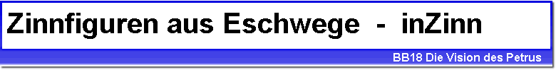 BB18 "Die Vision des Petrus" Die Figurengruppe BB18 wurde einseitig von Daniel Lepeltier nach Zeichnung von Sascha Lunyakov graviert (Größe 133 x 110 mm). Bemalung Philippe Fourquet. BB19+20 "Er ist auferstanden !" Bibel inZinn Die Vision des Petrus In Cäsarea lebte damals ein römischer Hauptmann, der Kornelius hieß und das Italienische Regiment führte. Er war ein Mann, der Gott ehrte und sich mit allen, die in seinem Haus lebten, zu ihm bekannte. Er tat viel für die Armen und betete regelmäßig zu Gott. Dieser Mann hatte gegen drei Uhr nachmittags eine Vision. Er sah deutlich, wie ein Engel Gottes bei ihm eintrat. "Kornelius!", rief der Engel. Erschrocken sah Kornelius auf und fragte: "Was willst du, Herr?" Da antwortete ihm der Engel: "Gott hat deine Gebete gehört und kennt deine guten Taten. Deshalb schick ein paar Leute nach Joppe. Sie sollen sich dort nach einem Simon Petrus erkundigen, der am Meer im Haus des Gerbers Simon wohnt. Dieser Simon Petrus soll zu dir kommen!" Gleich nachdem der Engel gegangen war, rief Kornelius zwei seiner Diener zu sich, außerdem einen Soldaten, der wie Kornelius dem jüdischen Glauben nahe stand und zu seinem persönlichen Schutz eingesetzt war. Ihnen berichtete er alles und sandte sie nach Joppe. Petrus hat eine Vision Als sich die Boten am folgenden Tag schon der Stadt Joppe näherten, stieg Petrus auf das flache Dach des Hauses, um dort ungestört zu beten. Es war gerade um die Mittagszeit, und Petrus hatte Hunger. Während man sein Essen zubereitete, hatte er eine Vision: Petrus sah etwas vom Himmel herabkommen. Es sah aus wie ein großes Leinentuch, das - an seinen vier Ecken zusammengehalten - auf die Erde heruntergelassen wurde. In dem Tuch waren alle möglichen Arten von vierfüßigen Tieren und Kriechtieren, aber auch von Vögeln. Alle diese Tiere sind für Juden "unrein" und dürfen deshalb nicht gegessen werden. (siehe unten - 3. Mose 11, 1-47) Dann hörte Petrus eine Stimme, die ihn aufforderte: "Petrus, steh auf, schlachte diese Tiere und iss davon!" "Niemals, Herr!", entgegnete Petrus. "Noch nie in meinem Leben habe ich etwas Unreines oder Verbotenes gegessen." Da rief die Stimme zum zweiten Mal: "Wenn Gott etwas für rein erklärt, dann nenne du es nicht unrein." Das geschah dreimal. Dann wurde das Tuch wieder in den Himmel gehoben. Petrus verstand nicht, was diese Erscheinung bedeuten sollte. Aber während er noch überlegte, klopften die Boten des Kornelius an die Haustür. "Wohnt hier ein Mann, der Simon Petrus heißt?", erkundigten sie sich. Petrus dachte noch immer über die Vision nach, als der Heilige Geist zu ihm sprach: "Es sind drei Männer zu dir gekommen. Geh hinunter und reise mit ihnen. Du brauchst keine Bedenken zu haben, denn ich habe sie gesandt." Petrus ging hinunter. "Ich bin der, den ihr sucht", sagte er. "Warum seid ihr hierher gekommen?" Sie erwiderten: "Der Hauptmann Kornelius schickt uns. Er ist ein guter Mann, der Gott ehrt und von allen Juden hoch geachtet wird. Durch einen heiligen Engel erhielt er von Gott den Auftrag, dich in sein Haus einzuladen und darauf zu hören, was du ihm zu sagen hast." Petrus ließ die Männer in das Haus eintreten, und sie übernachteten dort. Bereits am nächsten Tag aber ging er mit ihnen nach Cäsarea, wobei ihn einige aus der Gemeinde von Joppe begleiteten. Als sie am folgenden Tag dort ankamen, wurden sie schon von Kornelius erwartet. Alle seine Verwandten und Freunde waren bei ihm. Noch bevor Petrus das Haus betreten hatte, kam ihm Kornelius entgegen und fiel ehrerbietig vor ihm auf die Knie. Doch Petrus wehrte ab: "Steh auf, ich bin auch nur ein Mensch!", und half ihm wieder auf. Während sie noch miteinander redeten, betraten sie das Haus. Petrus sah die vielen Menschen, die auf ihn warteten. "Ihr wisst ebenso wie ich", begann er, "dass es einem Juden streng verboten ist, in das Haus eines Nichtjuden zu gehen oder sich auch nur mit ihm zu treffen. Aber Gott hat mir gezeigt: Ich darf keinen Menschen für unrein halten und ihm darum die Gemeinschaft verweigern. Deshalb bin ich auch gleich zu euch gekommen, als ihr mich gerufen habt. Aber was wollt ihr nun von mir?" Kornelius antwortete: "Vor vier Tagen betete ich nachmittags in meinem Haus. Es war drei Uhr, ungefähr dieselbe Zeit wie heute. Da stand plötzlich ein Mann in einem leuchtenden Gewand vor mir und sagte: 'Kornelius, Gott hat deine Gebete gehört. Er weiß, wie oft du den Armen geholfen hast. Deshalb beauftragt er dich, Leute nach Joppe zu schicken, die Simon Petrus zu dir bringen sollen. Er wohnt am Meer im Haus des Gerbers Simon. Ich habe meine Boten sofort zu dir geschickt, und ich freue mich, dass du gekommen bist. Nun sind wir alle hier in Gottes Gegenwart versammelt und wollen hören, was du uns im Auftrag des Herrn zu sagen hast." Gott liebt jeden Menschen Da begann Petrus zu sprechen: "Jetzt erst habe ich richtig verstanden, dass Gott niemanden wegen seiner Herkunft bevorzugt oder benachteiligt. Alle Menschen sind ihm willkommen, ganz gleich, aus welchem Volk sie stammen, wenn sie nur Ehrfurcht vor ihm haben und so leben, wie es ihm gefällt. Ihr kennt die Friedensbotschaft Gottes, die er dem Volk Israel durch Jesus Christus mitgeteilt hat, und er ist ja der Herr über alle. Ihr wisst auch, was in Judäa geschehen ist, nachdem Johannes der Täufer die Menschen in Galiläa dazu aufgerufen hatte, zu Gott umzukehren und sich taufen zu lassen. Jesus aus Nazareth ist von Ort zu Ort gezogen. Er hat überall Gutes getan und alle befreit, die der Teufel gefangen hielt, denn Gott selbst hatte ihm seine Macht und den Heiligen Geist gegeben. Gott stand ihm bei. Wir Apostel sind Augenzeugen für alles, was er in Israel und in Jerusalem unter den Juden getan hat. Diesen Jesus haben sie an das Kreuz genagelt und getötet. Aber schon drei Tage später hat Gott ihn wieder zum Leben erweckt. Danach ist er als Auferstandener erschienen, zwar nicht dem ganzen Volk, aber uns, seinen Jüngern, die Gott als Zeugen best